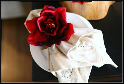Yeah, I just love those red rose napkin holders, especially the sparkly center! And the kissing ball, of course you had to get it too! A perfect touch! Great staging in the pictures, all looks beautiful!!!