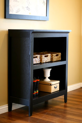 And so I decided I needed to organize the little bookcase before it took over for "organizing my guys." So I added my Target receipt box {I highly recommend this to all loyal Target shoppers...saves your wallet & purse}and a basket to catch all -- but, it was too big.
